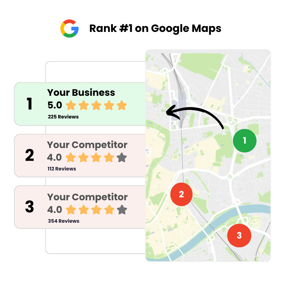 We get you ranked above your competitors in Google Maps WITHOUT SPENDING ONE CENT on Google ads.